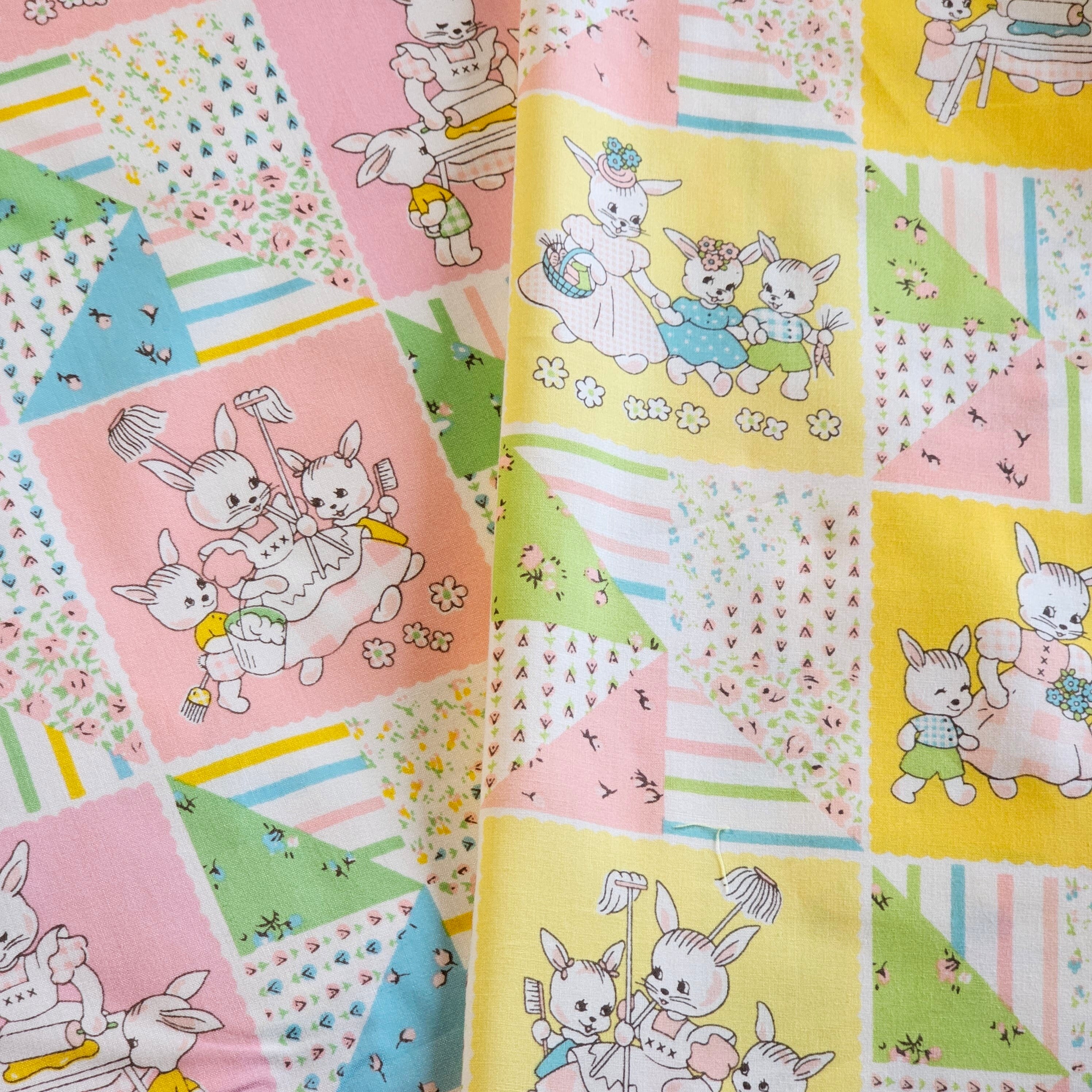 まるでうさぎ親子がなかよく暮らす絵本の1ページみたいな生地
