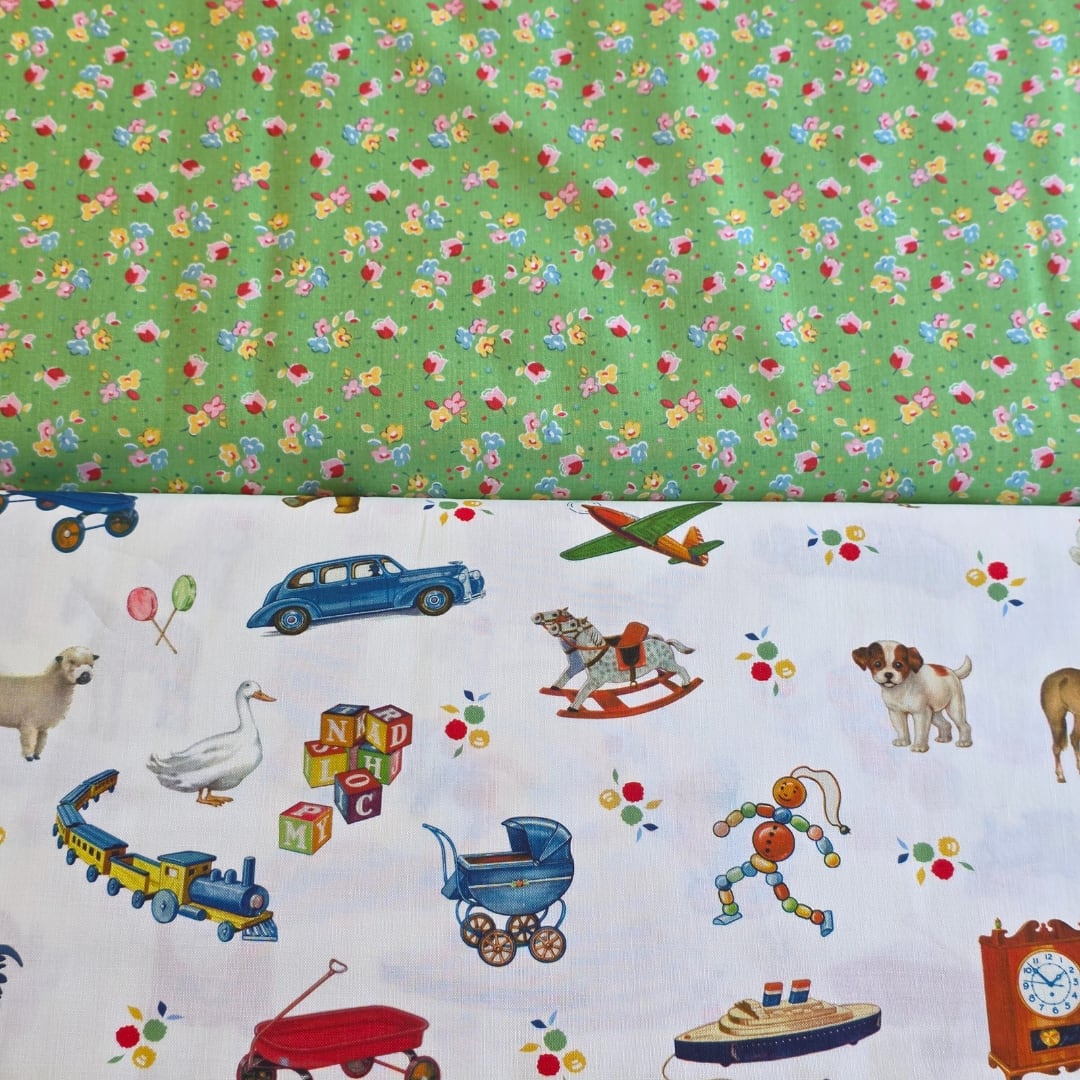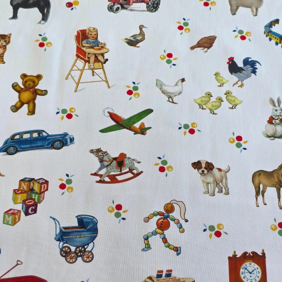 どこか懐かしいおもちゃ柄と花柄が入荷してます。