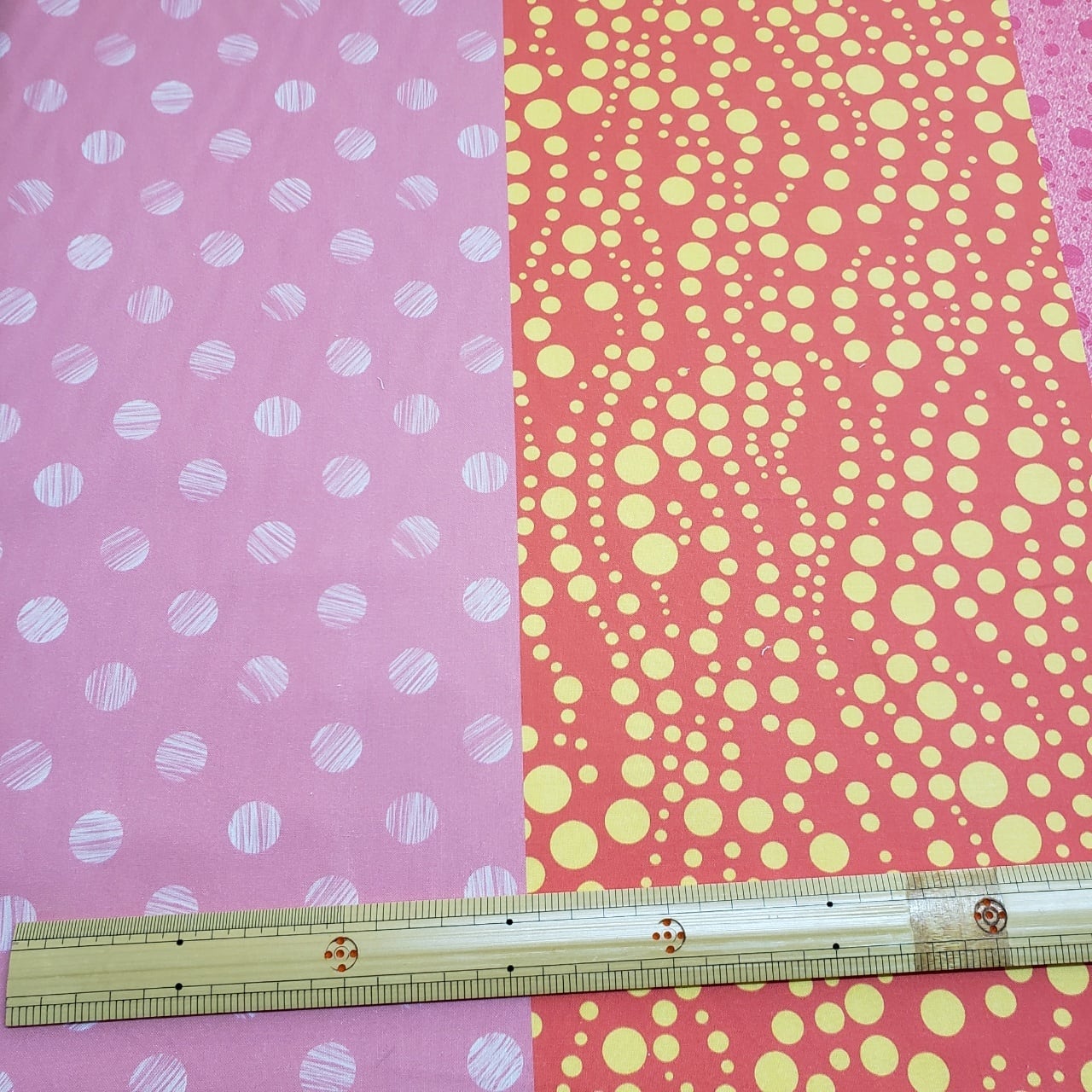 ひねりを効かせたドット柄を、110cmの生地幅の中に